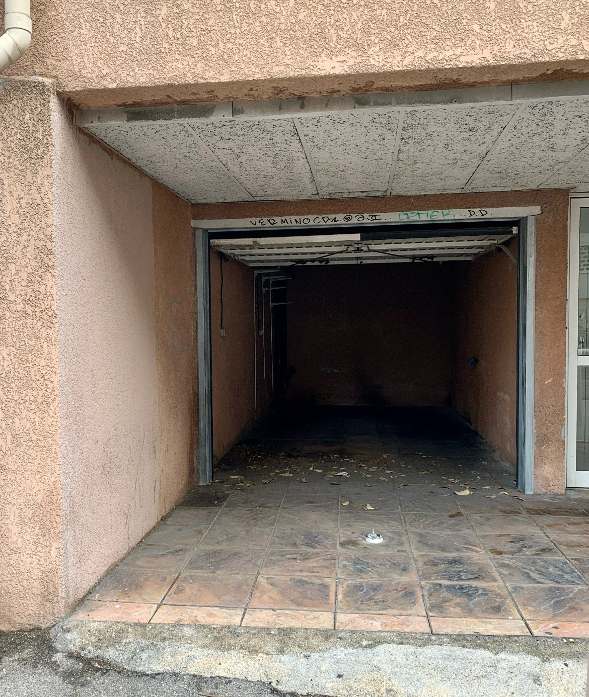 Garage en pied d'immeuble donnant sur rue :