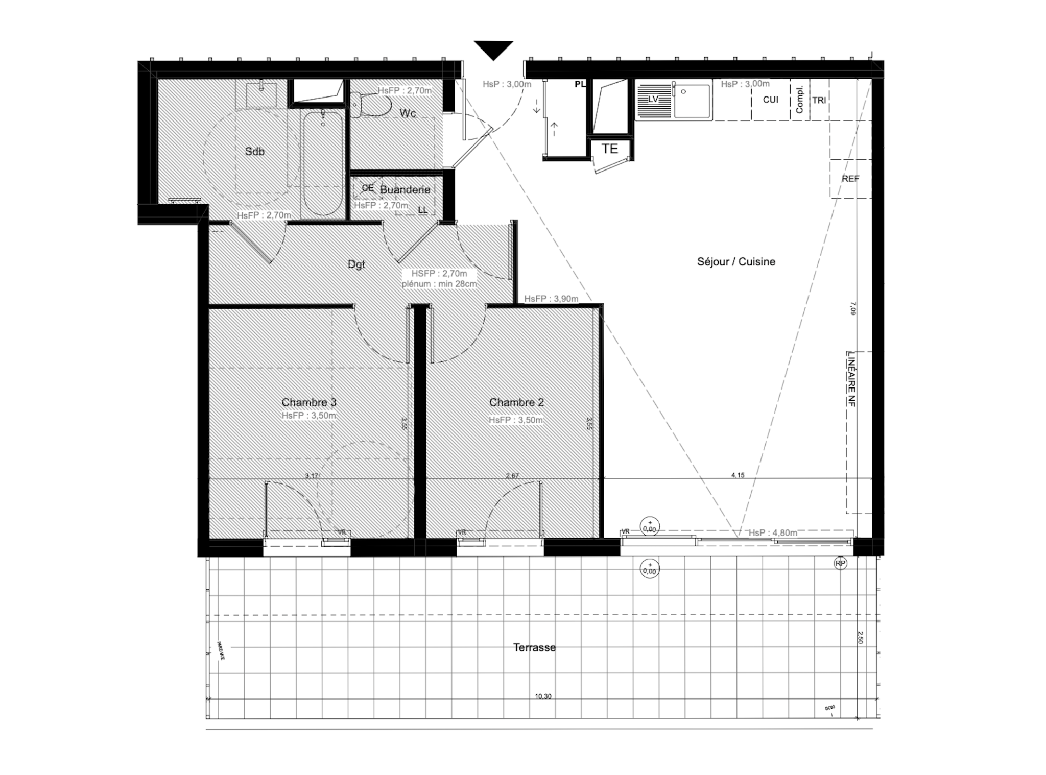 – terrasse 26 m² plein sud