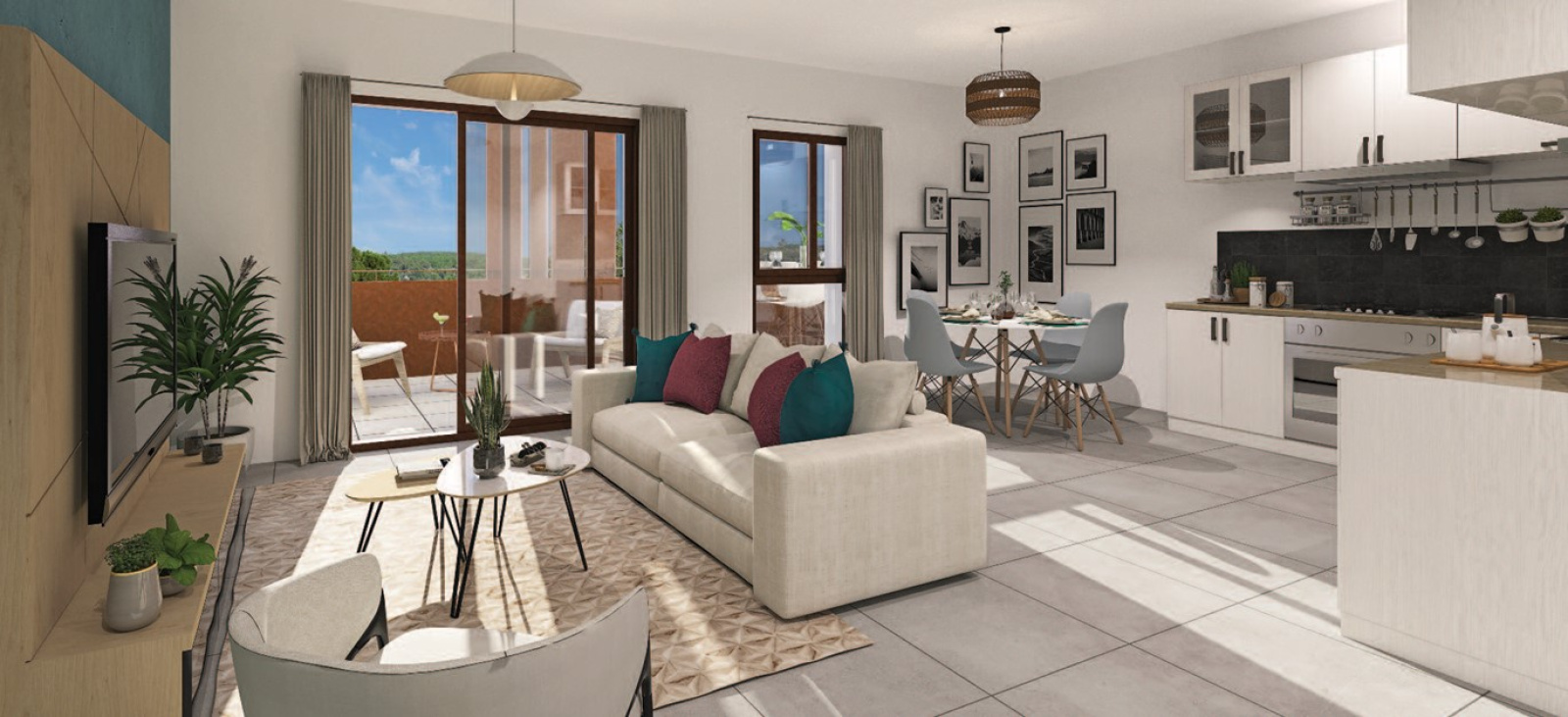 - T3 à partir de 351 000€ jusqu'à 362 600€ (surfaces entre 60 et 65m², terrasse entre 12 et 19m²)