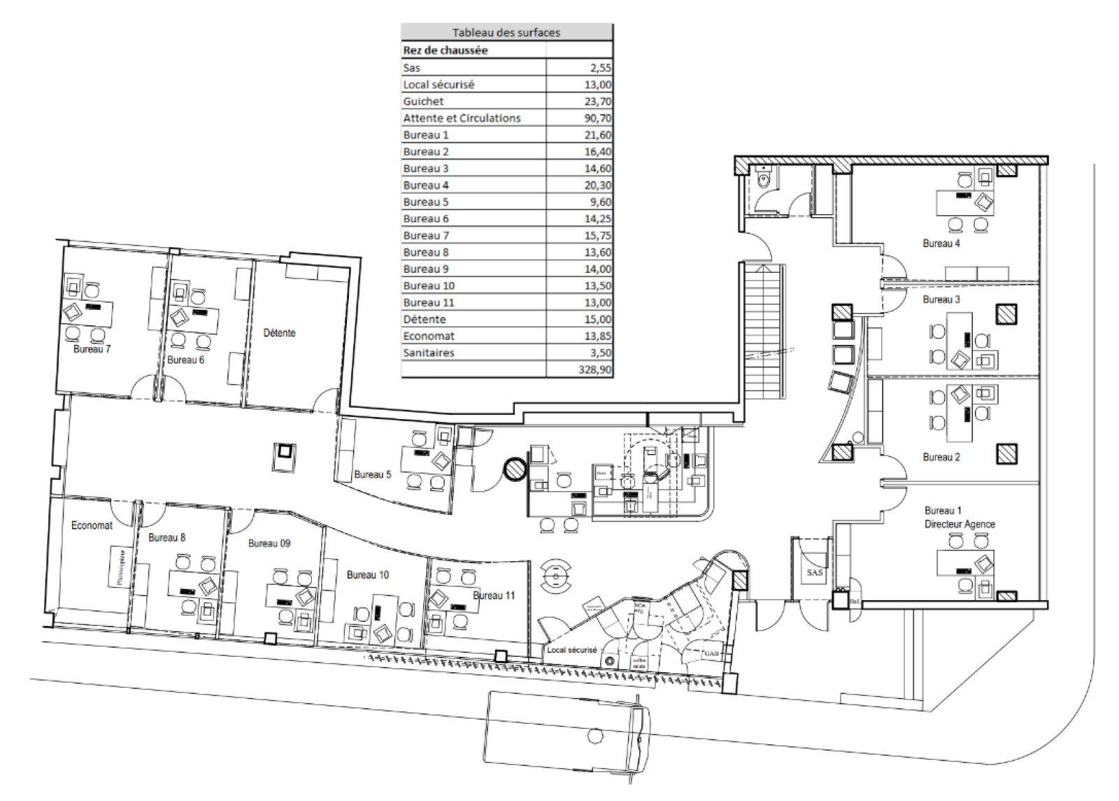 - Rez-de-chaussée : 329 m², bénéficiant d’une excellente visibilité