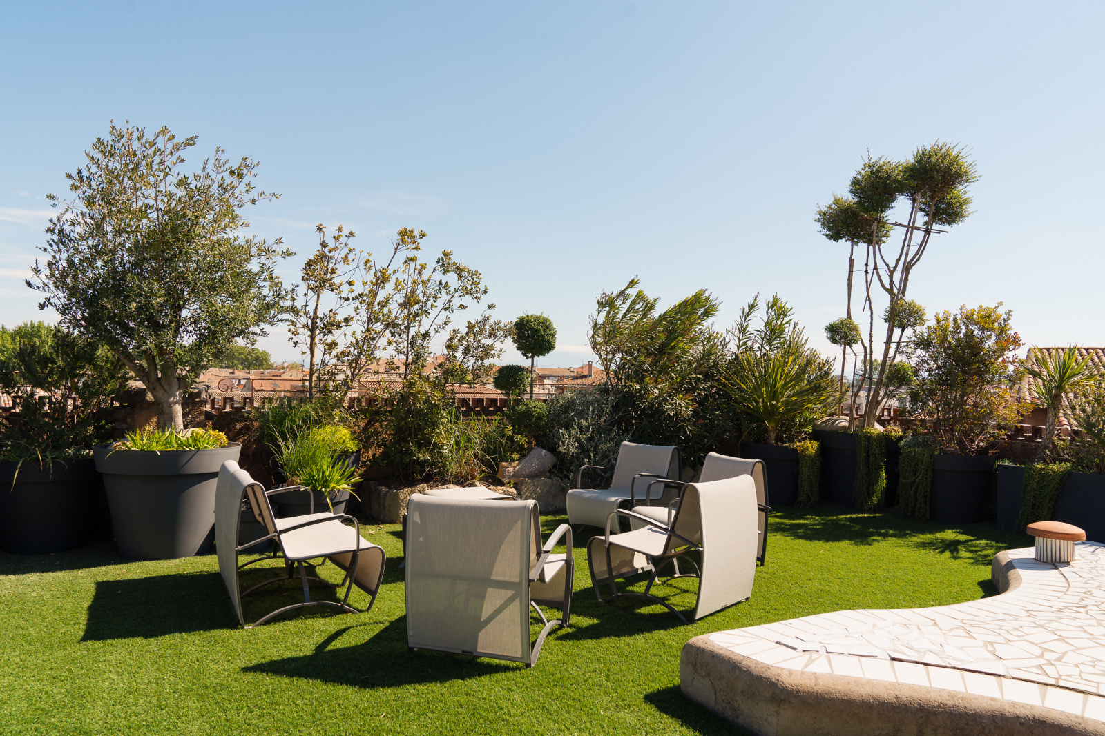 Une magnifique terrasse végétalisée de 104 m², offre une vue imprenable sur le centre historique, le Palais des Papes, et le Mont Ventoux, véritable invitation à la contemplation.
